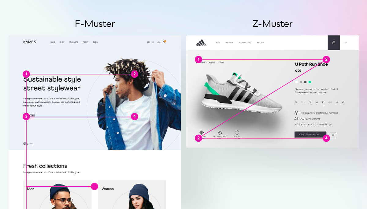 Design Vergleich von 2 E-Commerce Websiten